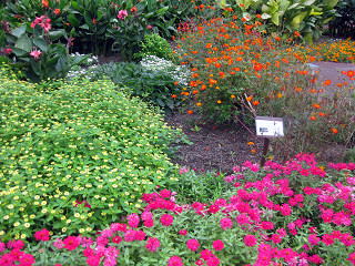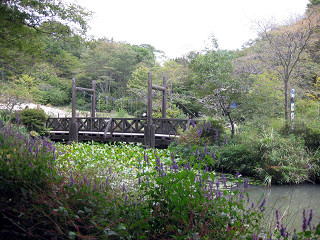 | 大屋根リングには花壇があり上側と下側の2層の歩道が ある部分で下の歩道から上の歩道を撮る |